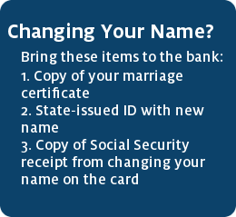 If you have changed your legal name & need to make this adjustment on your accounts as well, bring the bank a copy of your marriage certificate, a copy of the social security receipt from when your name was changed & a state-issued ID showing your new name. This, of course, means that you will need to take care of these other steps before you adjust the information on your bank account. Contact your banker if you have specific questions about this process.